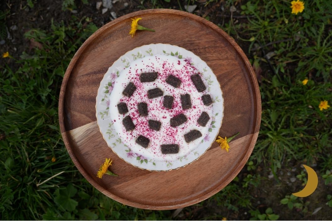 Or! put some yogurt on a fancy plate, decorate it with dog treats into a swirl and dust with rose hibiscus powder!