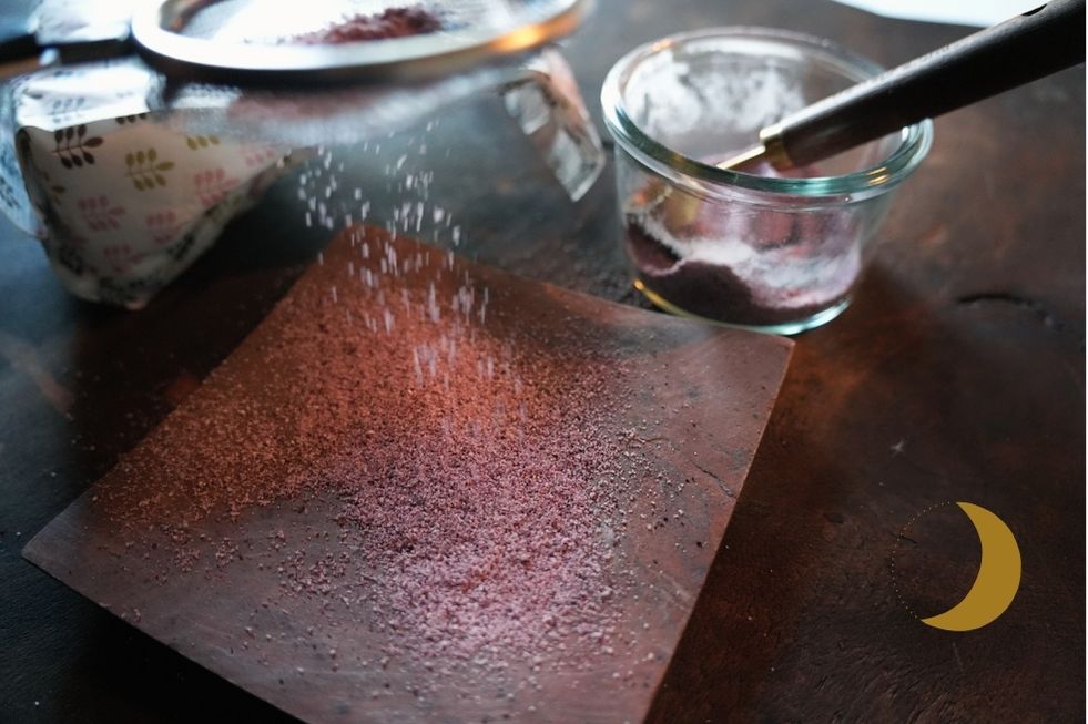 This vibrant powder isn't just for the kitchen. Its deep crimson and dusty pink tones, along with its herbal energy, make it a beautiful tool for eco art and botanical creativity. Here are three ways to incorporate it into your artistic practice: